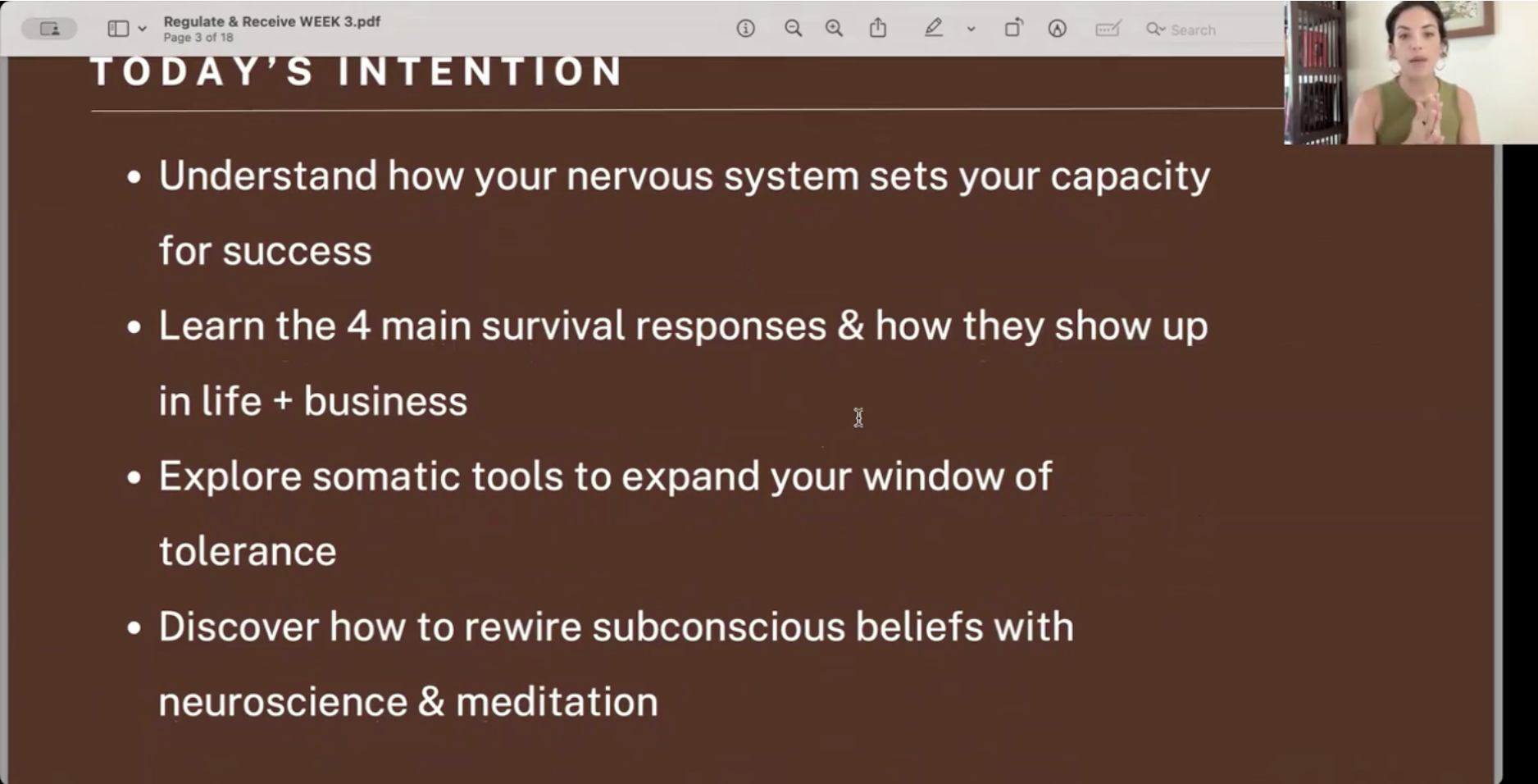 Regulate & Receive is a self-paced, in-depth program for business owners, wellness practitioners, and heart-led creatives who are ready to release survival-mode patterns (overworking, people-pleasing, scarcity), build somatic safety around earning and visibility, and approach manifestation with compassion — so desire stops feeling like demand, and starts feeling like something your body can actually hold.